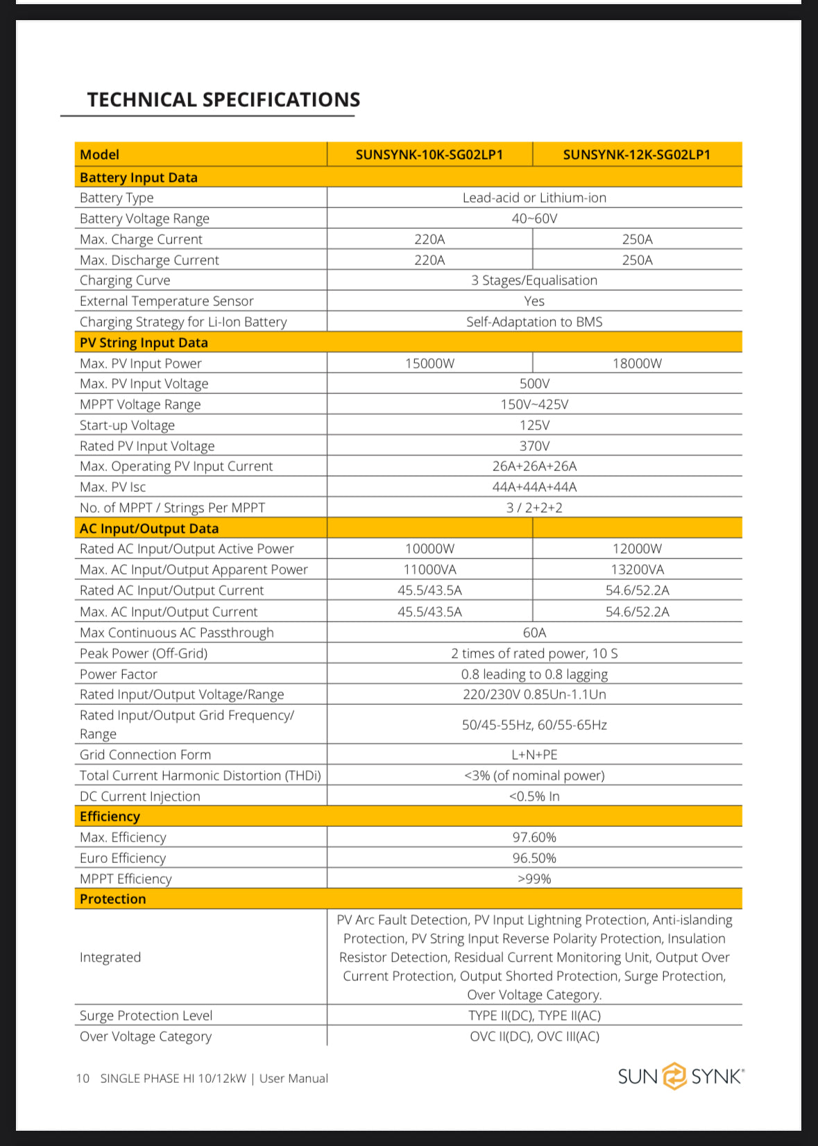 10KW SUNSYNK Single Phase LV Hybrid Inverter + WIFI