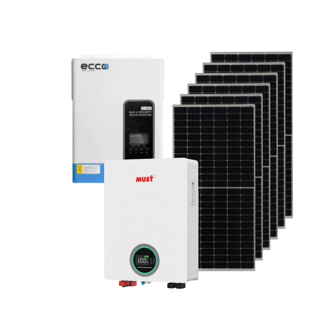 6.2KVA/6200W Ecco MPPT Hybrid inverter + 1x 5.12 KWH MUST 100AH Lithium Batteries + 6x 545W TIER 1 Mono Crystal Solar Panels Off Grid Solar Kit