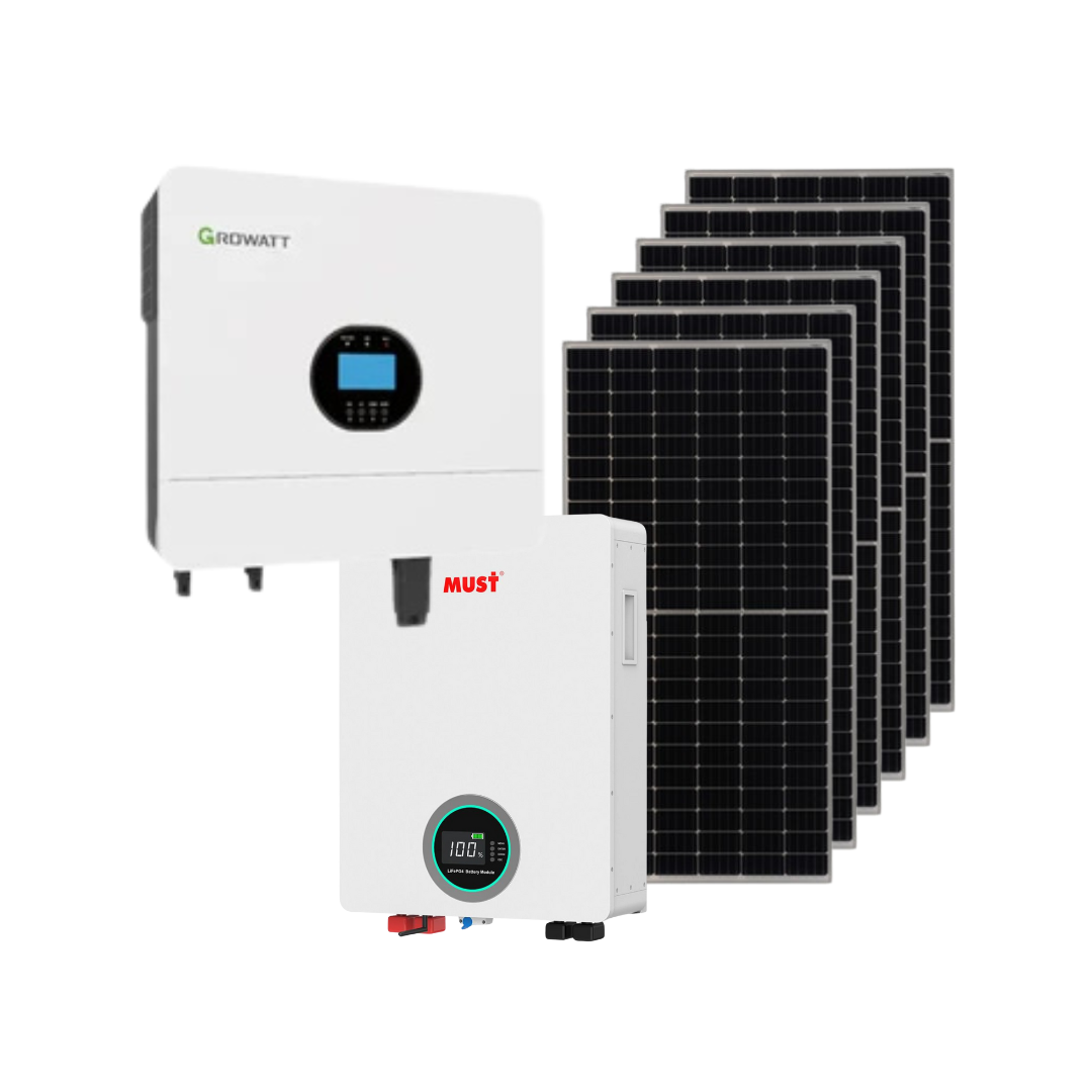 6KW Off-Grid Growatt Hybrid Inverter MPPT 100A + 1x 5.12 KWH MUST 100AH Lithium Batteries + 6x 545W TIER 1 Mono Crystal Solar Panels Off Grid Combo