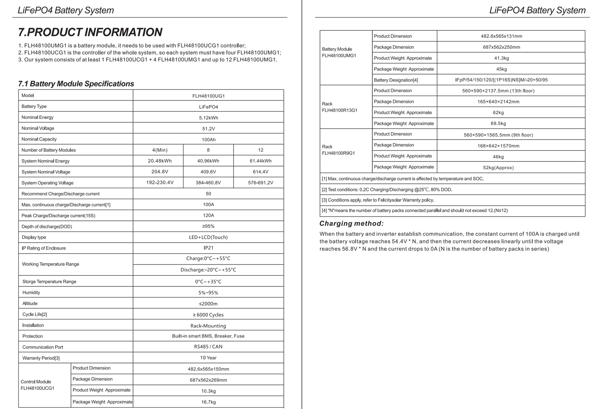 Felicity 61.44kWh High-Voltage Lithium Battery System – LUX-Y-48100HG01