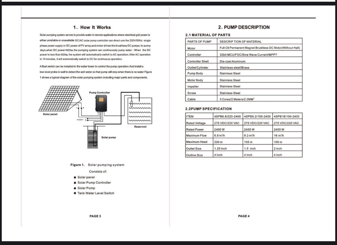 1x HZ Solar Wate Pump 220m AC/DC