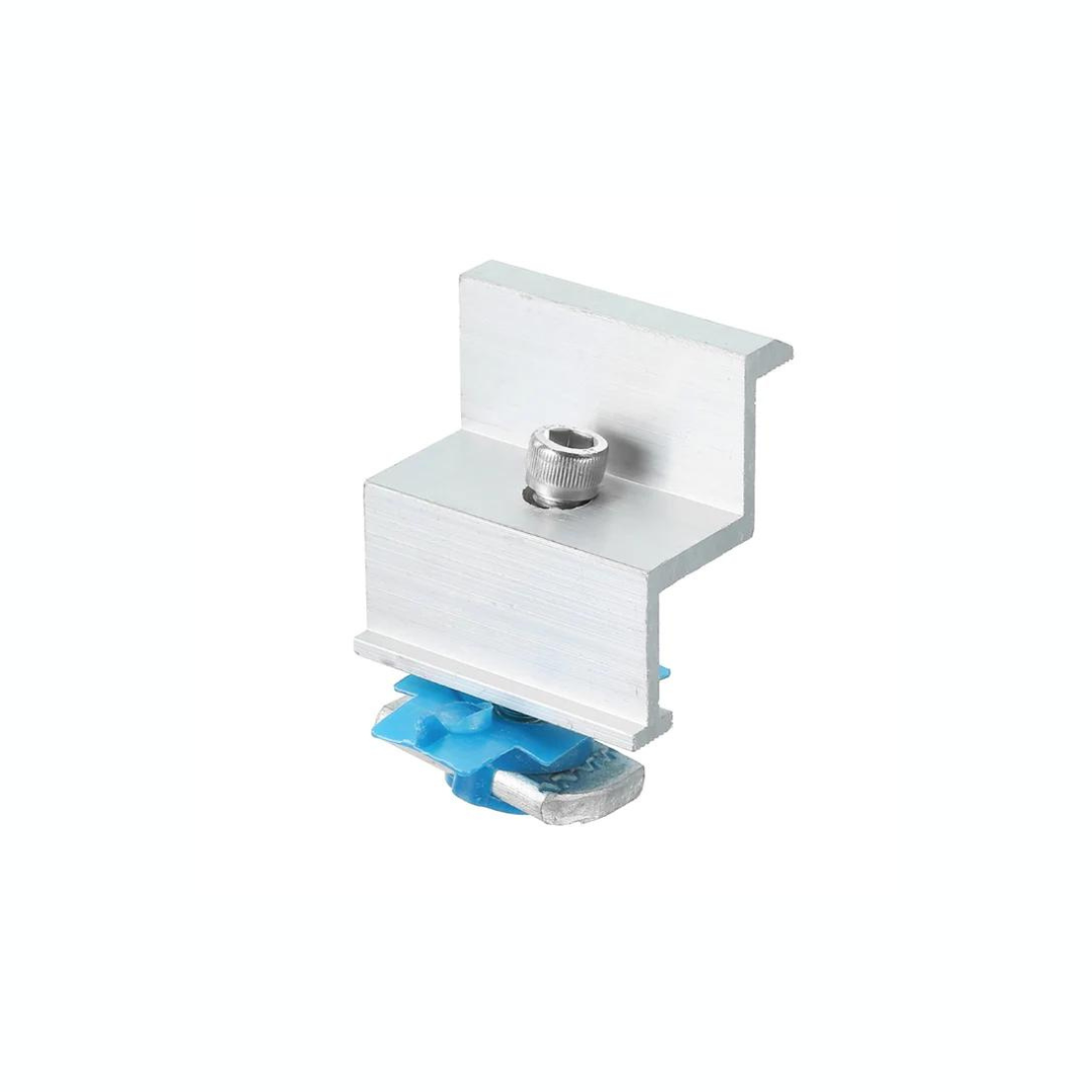 The solar end clamp is what comes on the outer side (end , top & bottom) of the solar panels as displayed in the picture when installing solar panels to ensure a secure installation.